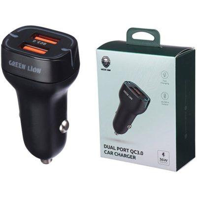 شارژر فندکی دو پورت خروجی ۷۵ وات گرین لاین Green Lion Dual Port Car Charger PD+QC