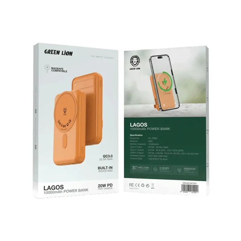 پاوربانک گرین لاین مدل green lion lagos ظرفیت 10000 میلی امپر